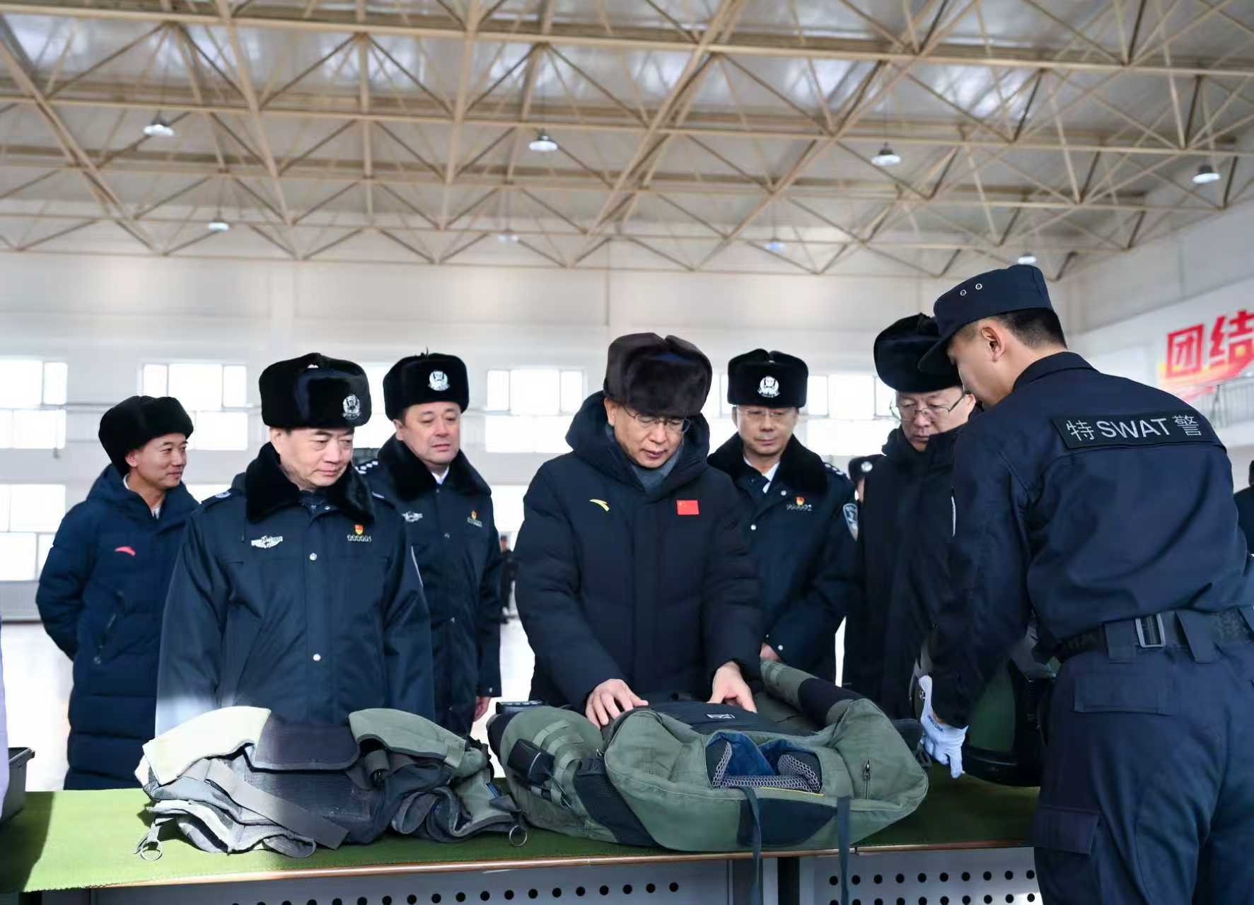 许勤来到哈尔滨市公安局巡特警支队,了解新型警务设备、执勤备勤等情况。