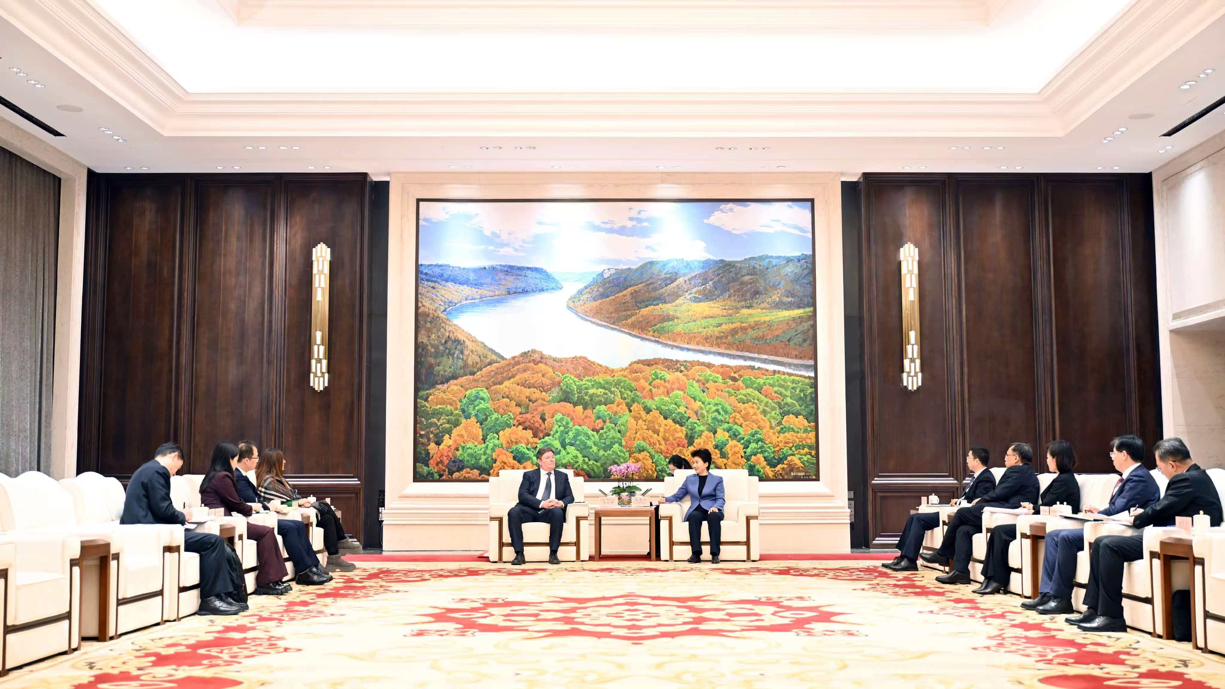 16日,省委副书记、省长梁惠玲在哈尔滨会见雀巢大中华区董事长兼首席执行官马凯思一行。