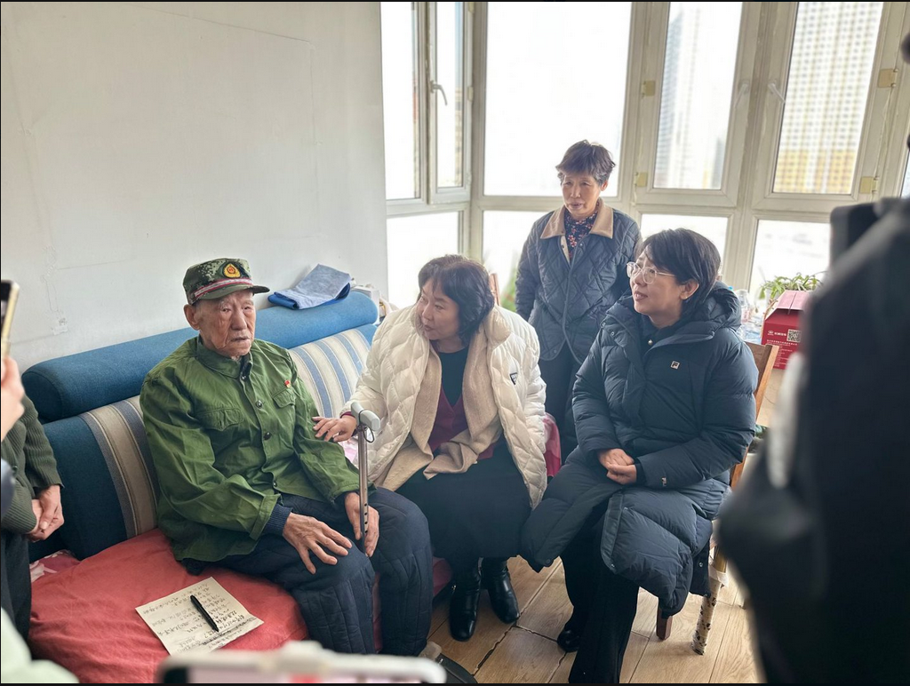 志愿者们随后看望了97岁高龄的老党员、抗美援朝退伍老兵关运庆。他的女儿代父亲道出了心底的感动:“父亲知道今天你们来,心里特别高兴,一直念叨来着。他让我告诉你们,社区一直很关心他,一定替他谢谢党、谢谢政府、谢谢大家。”