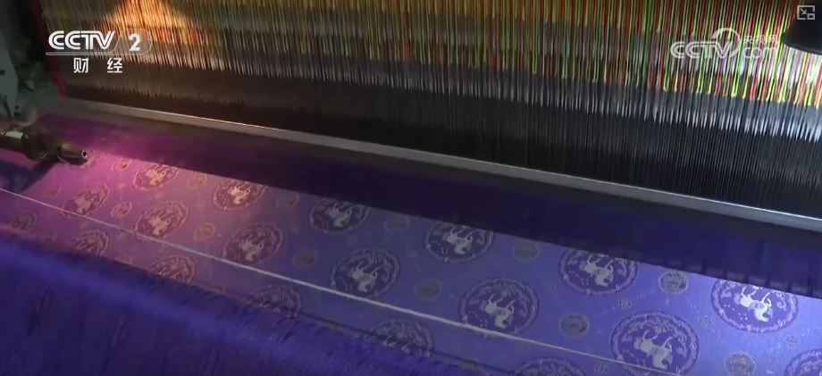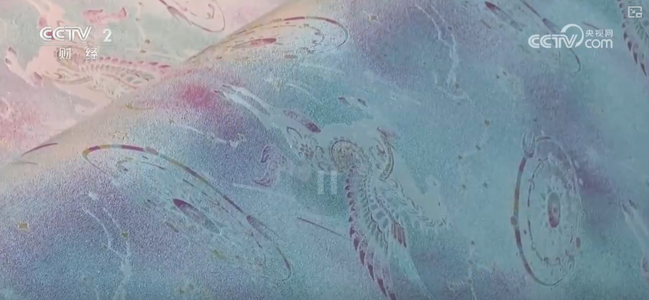 企业负责人张国权介绍,结合真丝、金银丝等各种素材,把它组合在一起。这一款是“马到成功”,还有“龙马精神”“一马当先”。团队设计出来之后,他们经过配色,体现在绸面上,给客户一个丰富的多彩世界。