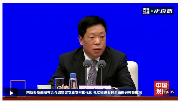 今天(2月4日)上午10时,国务院新闻办公室举行新闻发布会,介绍锚定农业农村现代化、扎实推进乡村全面振兴有关情况,并答记者问。