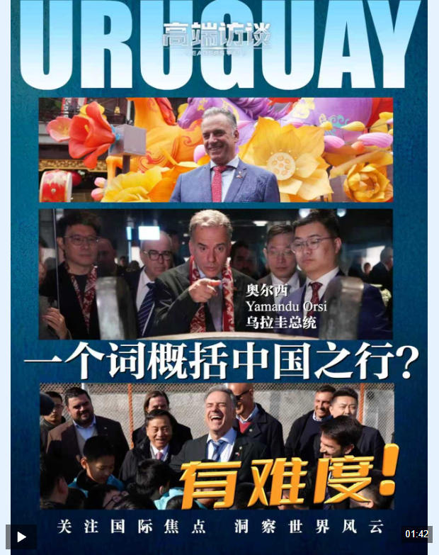 乌拉圭总统奥尔西:当然,最先浮现在我脑海中的是“衷心感谢”“谢谢”。回望过往与当下,我想说,中国,是一种真切的“现实”。这份“现实”虽缘起于梦想,但我此刻更深深地感知到,自己正置身于这与千年悠久历史一脉相承的“现实”之中。我曾说过,无论过去、现在、还是未来,全世界都需要了解真实的中国。若说此刻除了满心感激之外还有什么别样的体会,那便是这份此前从未真正体悟过的“现实”。当人们真正理解这种现实后,就更容易建立起至关重要的信任基础,从而缔结最牢固的纽带。贵国所展现的国家形象,如此清晰、明朗。在当今世界格局中,这是一项巨大的优势。
