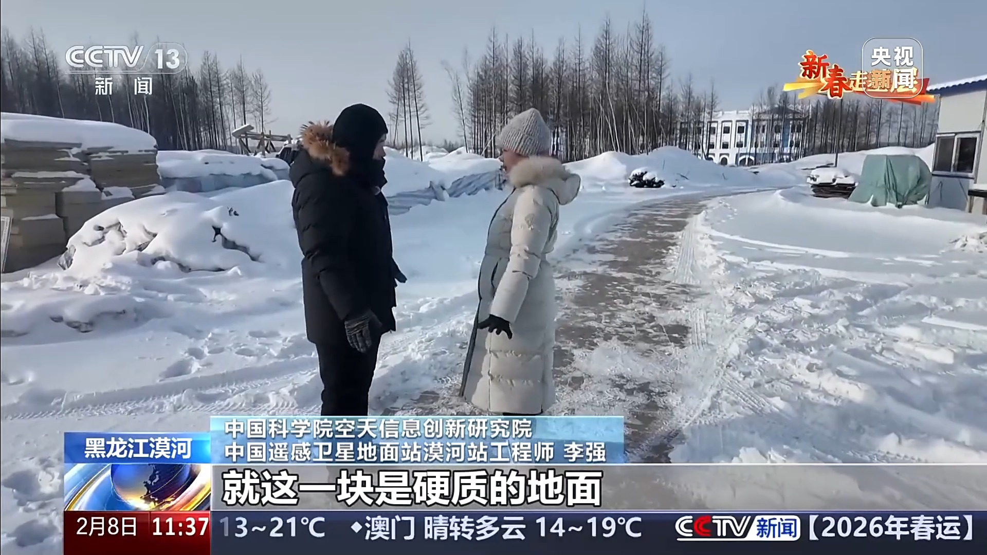 中国科学院空天信息创新研究院中国遥感卫星地面站漠河站站长施胜浦:大伙儿都团结在一起,圆满地完成国家给我们的数据接收任务,这也是对我们2026年的一个期许。我们五站同心、天地相连,这是专属于我们地面站的团圆的意义。