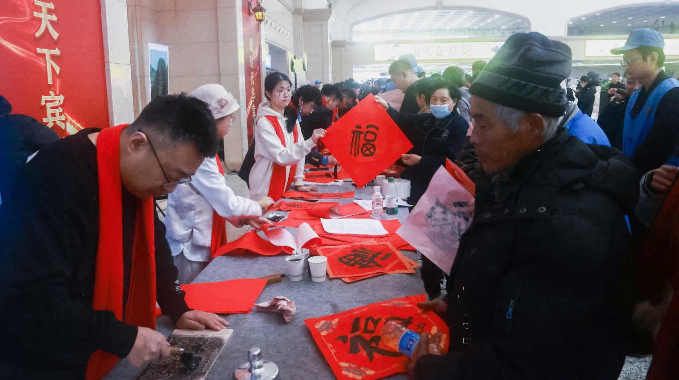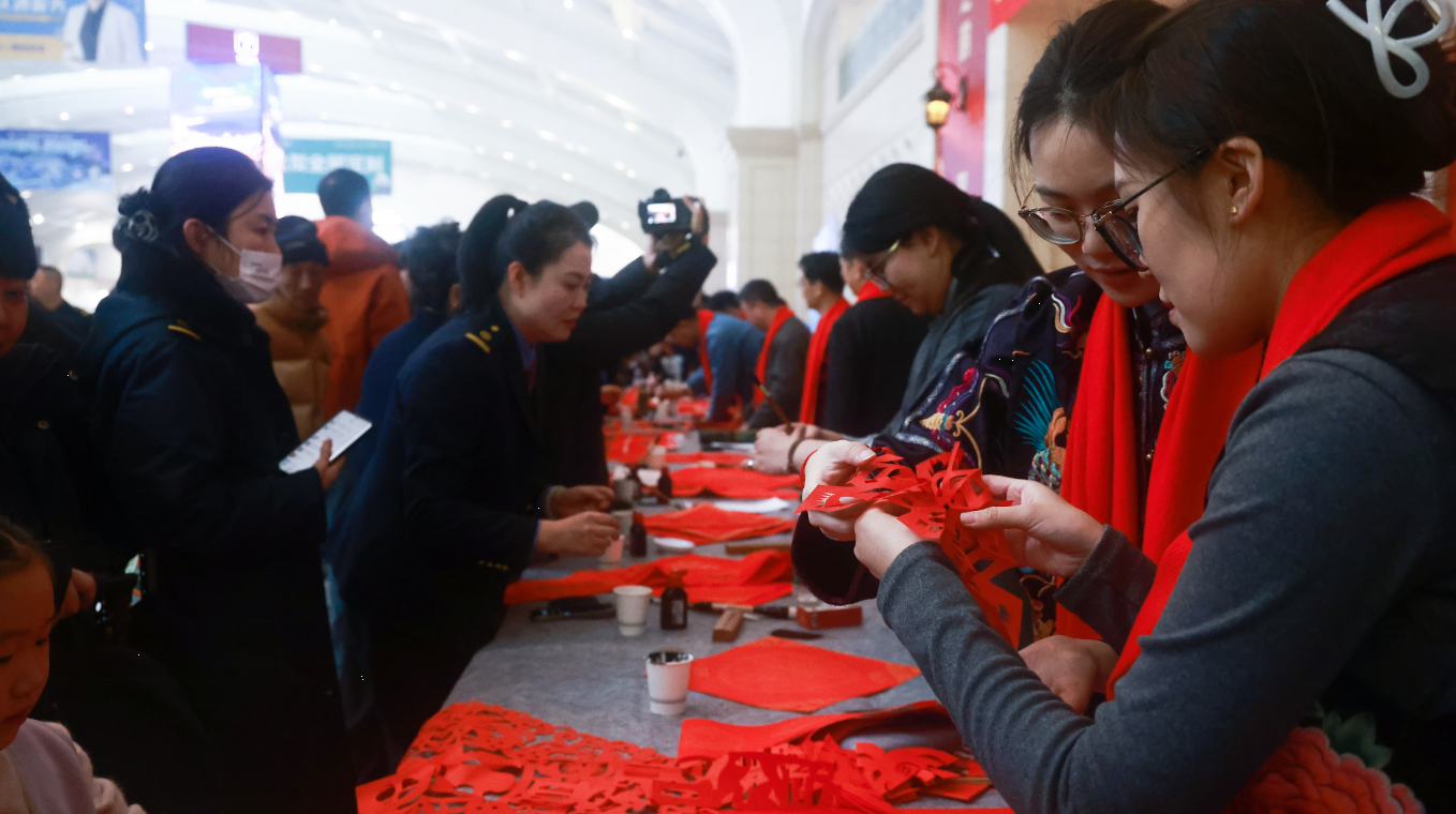 2月10日,农历腊月二十三,北方小年当天,由黑龙江省群众艺术馆与中国铁路哈尔滨局集团有限公司联合主办的“万福迎春”新春送福活动暨“福到万家”文化惠民活动在哈尔滨站成功举行。活动以写福字送春联、剪纸、马年版画印制、迎新春文艺演出等形式,为南来北往的游客、坚守岗位的铁路职工及归心似箭的归乡旅客,送上了一份兼具地域特色与文化底蕴的新春礼物,让奔波的旅途浸润着浓浓的年味与温情,诚邀四海宾朋来龙江过大年。
