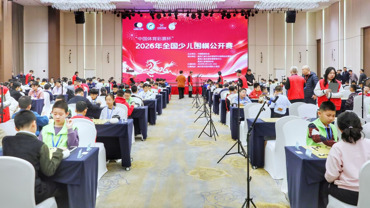 2月12日,“中国体育彩票杯”2026年全国少儿围棋公开赛在哈尔滨开幕,来自全国各地的440余名小棋手齐聚一堂,以棋会友,在黑白棋子间展开一场智慧与策略的激烈较量。