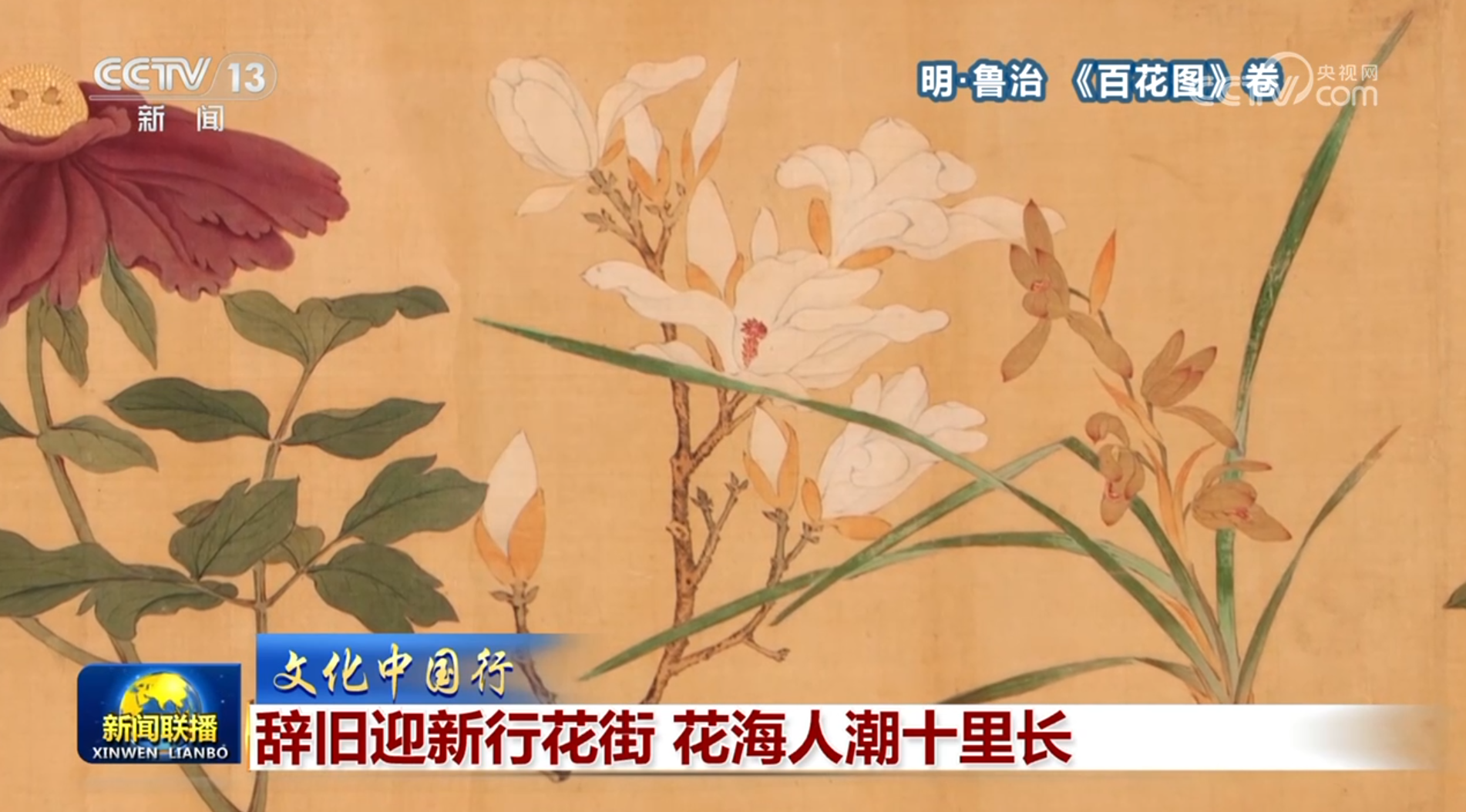 广州气候温暖、雨量充沛,素有“花城”之名。唐宋时期,广州花卉种植已十分普遍,开始出现花卉买卖的市场。唐代诗人张籍写道“海花蛮草连冬有,行处无家不满园”。中国人对花的喜爱由来已久,这件广东省博物馆的镇馆之宝,由明代花卉画家鲁治所绘的《百花图》卷,以细腻写实的笔触描绘了那时人们常见的草木。其中,寓意美好的玉兰、坚韧不拔的梅花和清雅脱俗的水仙等现在迎春花市中人们依然喜爱的花卉跃然纸上。