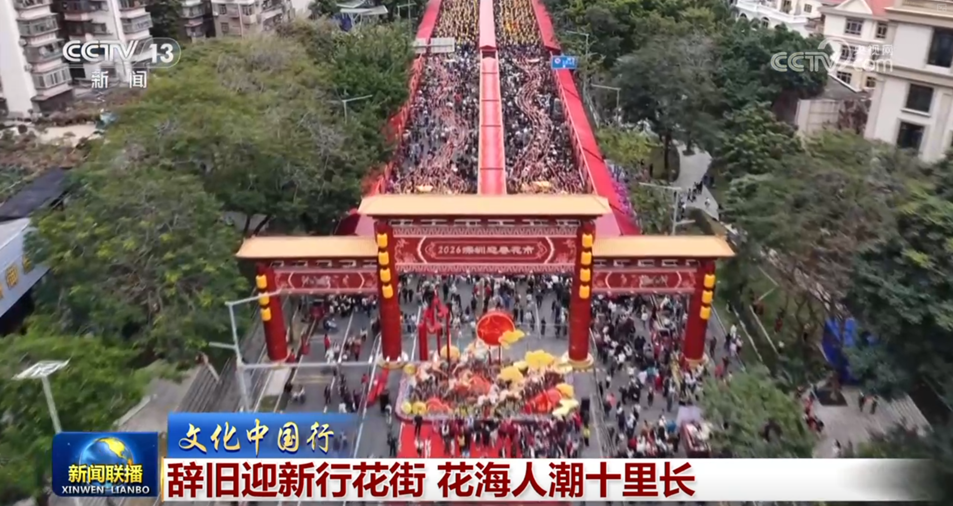 央视网消息(新闻联播):行花街是岭南地区迎新春的一项民俗活动。人们在热闹的花市里,选购年花年货,品特色美食、赏民俗表演,2月21日的《文化中国行》让我们一起领略这项国家级非遗“花海人潮十里长”的独特魅力。