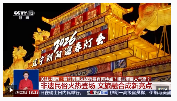 为期9天的马年春节假期即将结束,今年春节假期,各地文旅消费有哪些特点?哪些项目人气高?记者在采访中了解到,春节假期,非遗文化游、年俗游、赶大集、逛庙会、看灯展等承载“年味”的体验型旅游需求大幅增长,成为游客追寻年味、感受烟火气的热门选择。