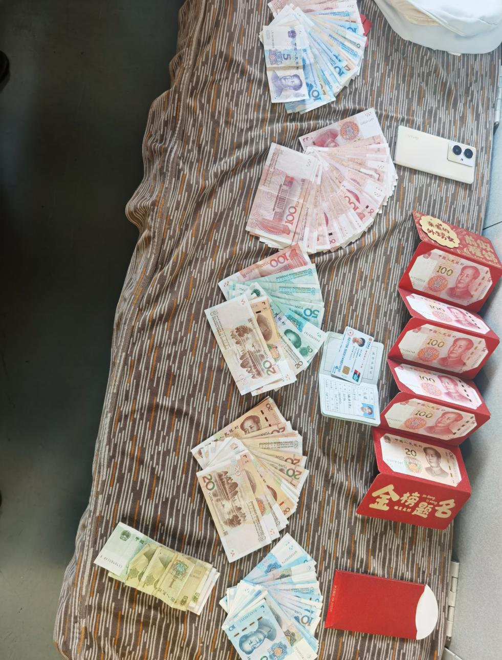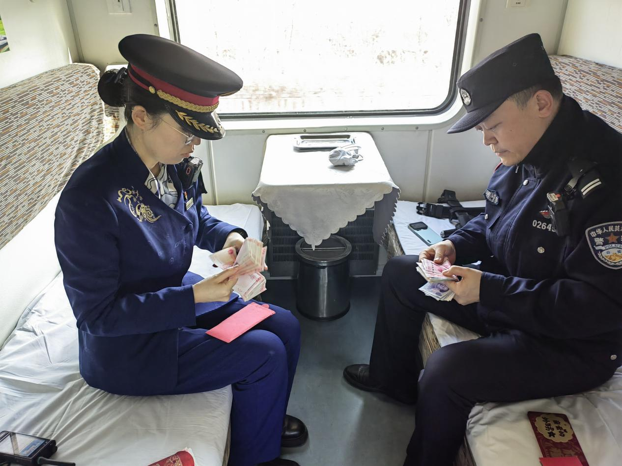 接到报告后,董立贤迅速与乘警长赶赴现场。为尽快寻找失主线索,几人按规定程序共同打开手提包进行检查。经清点,包内除了一部手机外,还有大量现金。董立贤立即使用客运手持终端机(交互机)进行信息查询,经过仔细比对和筛选,最终成功锁定了失主的购票信息及联系方式,并第一时间与失主取得了联系。