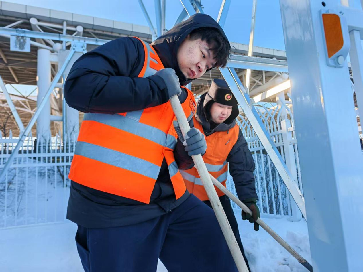 连日寒潮,白天气温也降至-20℃以下。10时许,他们抵达抚远站。信号塔是铁路“信息枢纽”,承载着列车调度与数据传输的关键使命,是每月必查的重点。