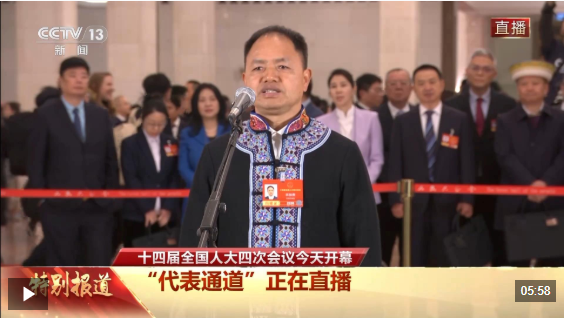 今天(3月5日),十四届全国人大四次会议首场“代表通道”在人民大会堂举行,全国人大代表、云南省文山州广南县落松地小学教师农加贵接受记者采访。