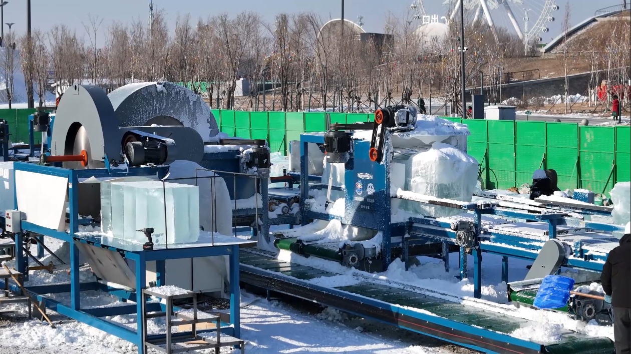 “型冰机”生产的冰砌块尺寸精准、表面光滑,用在主塔、大型城堡这类景观群的建设上,砌筑效率能提高50%以上,还能提高冰景观的质量。