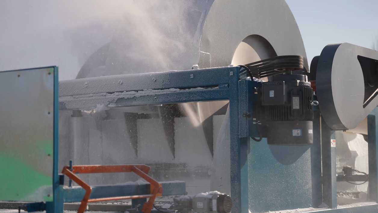 多年来,人工使用链锯生产“冰砌块”需要分别切割6个表面,不仅效率低,而且难以精准切割成标准的长方体,这不仅会影响冰景观的砌筑效率,而且还会影响冰景观的整体质量和抗风化能力。