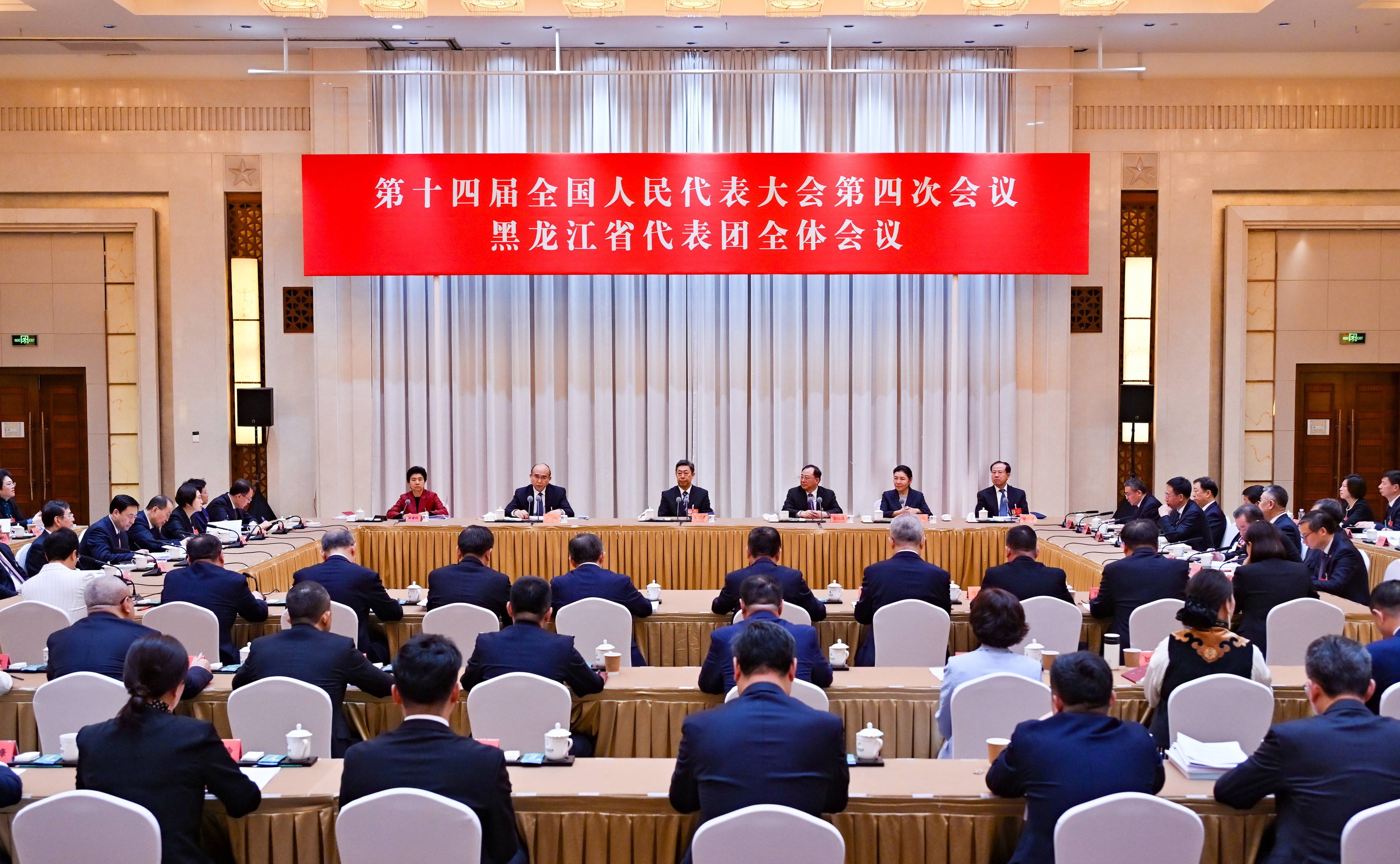 出席十四届全国人大四次会议的黑龙江代表团召开第三次全体会议