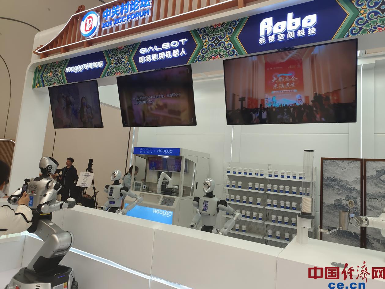 机器人餐吧将北京传统小吃融入轻餐饮场景,多品牌异构机器人通过统一调度平台,实现从点餐、制作到送餐的全流程自主协同作业。中国经济网记者朱晓倩/摄