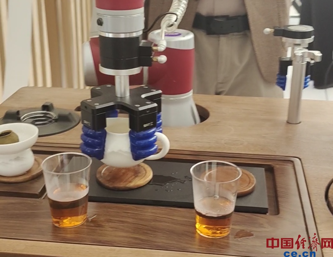 茶艺机器人可模拟煮茶大师手法,提供便捷、地道的用茶体验。中国经济网记者朱晓倩/摄