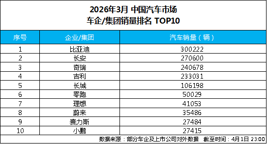 4月 1日,比亚迪发布2026年 3月销售数据,单月总销量达300222辆,强势突破30万辆大关,斩获中国车企销量冠军,并连续58个月蝉联中国新能源汽车销量冠军,持续稳固行业龙头地位。截至目前,比亚迪新能源汽车累计销量已超1580万辆,一季度累计销售700463辆,以硬核数据印证技术与规模双重实力,助力一季度完美收官。
