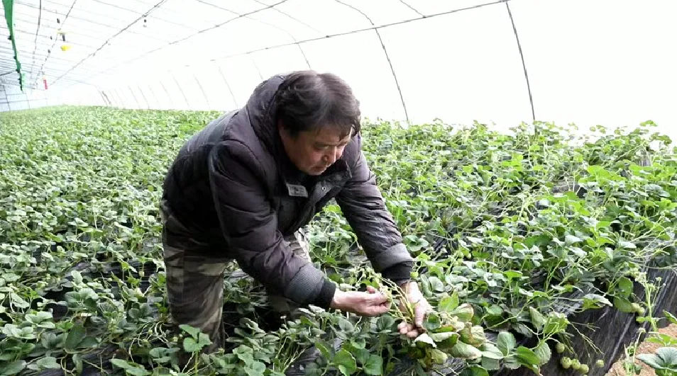 近日,汤原县竹帘镇兴顺村生态草莓基地的温室大棚内呈现一派生机勃勃的景象,秧苗繁茂、草莓红嫩,依托智能控温与太阳能增温技术,使草莓茁壮生长。