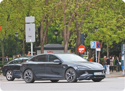 行驶在马德里街头的中国品牌电动汽车。本报记者许海林摄