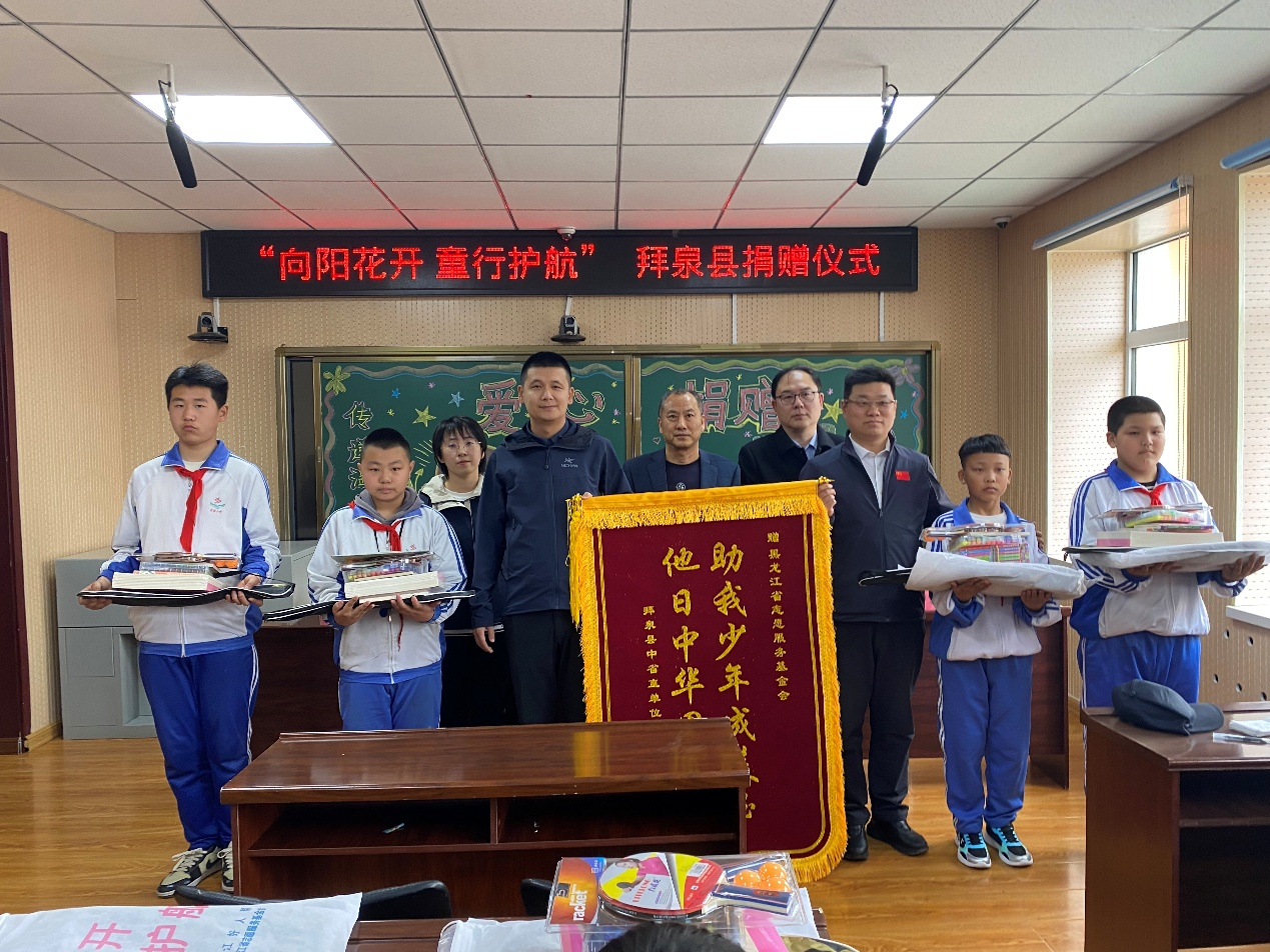 2026年初,经拜泉县中省直单位驻村第一书记联盟联络,黑龙江省志愿服务基金会走进拜泉县特殊教育学校。4月15日,“向阳花开 爱心护航”—省志愿服务基金会赴拜泉县开展爱心捐赠活动。省志愿服务基金会负责人,拜泉县教育局、民政局主要领导,黑龙江省委组织部、省直机关工委、中储粮集团、省国税局、省广播电视台、哈工大及哈尔滨音乐学院在拜泉县的驻村第一书记与特殊学校的师生一起举行了简洁的捐赠仪式。
