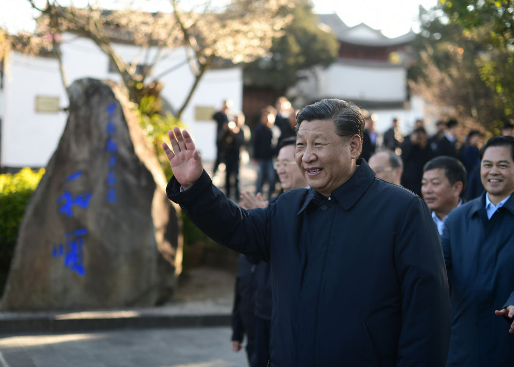 2020年1月19日下午,习近平在云南腾冲市和顺古镇考察调研时,向游客和村民挥手致意。