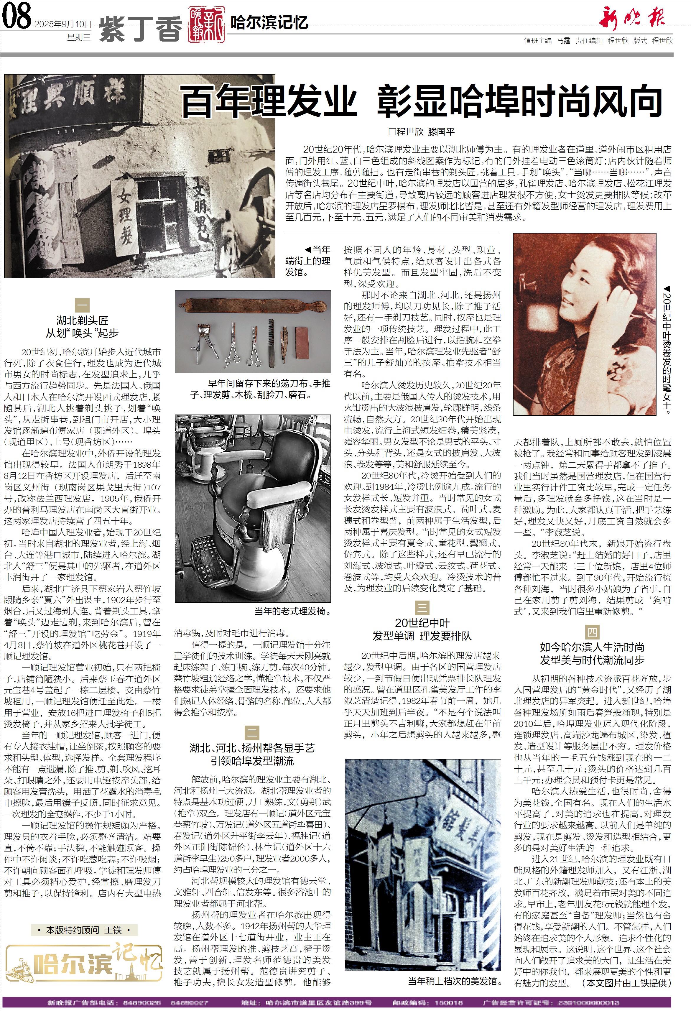作者通过走访老理发匠的后人、查阅地方史料,梳理哈尔滨理发业的起源、发展脉络,用“小切口”细节描写勾勒大时代壮阔场景,既记录技术流派特色,又折射城市审美与民生变迁,文风质朴厚重,兼具史料性与可读性。 本文刊发后,唤起老哈尔滨人对国营理发店、传统理发技艺的集体记忆,引发市民对城市生活史的讨论,带动“老哈尔滨理发故事”话题传播,为记录城市民俗文化、展现百年来哈埠时尚风貌留存了珍贵文本。 |