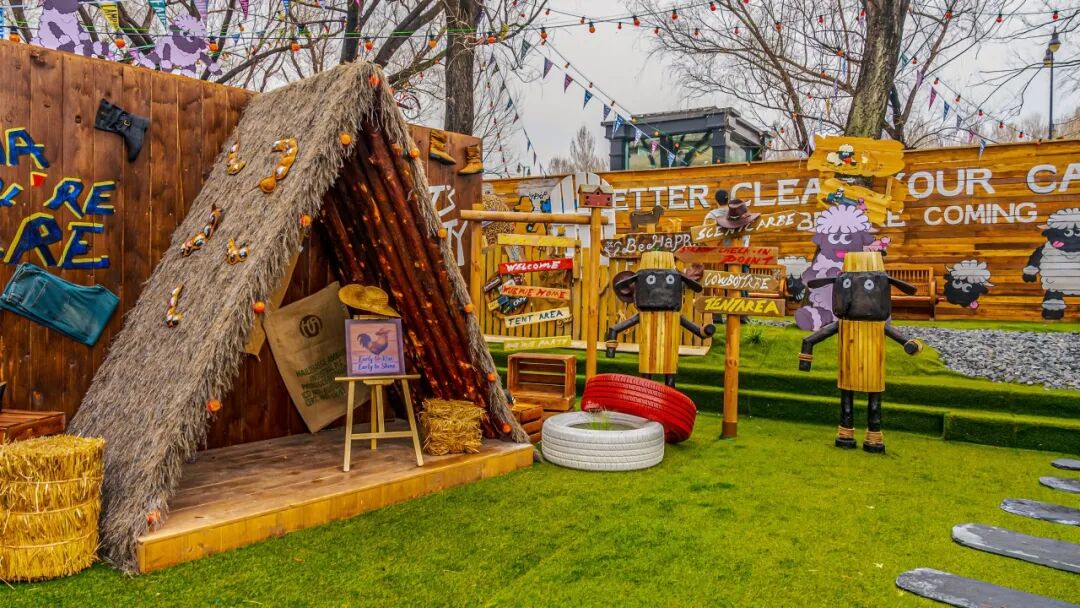 步入咩咩农场入口,欢快的田园气息扑面而来。整个农场布局错落有致,精心划分为沉浸式牧场体验区、文创市集区、休闲拍照区、宠物友好区及游乐互动区等多元场景。在牧场体验区,憨态可掬的瓦莱黑鼻羊与活泼亲人的尼日利亚矮山羊成为绝对主角,游客可近距离互动,在都市一角体验原汁原味的牧场生活。农场内还散落着50余处精心设计的休闲拍照点位,从美式酒吧到印第安风插画墙,随手一拍皆是异域系大片,让大朋友和小朋友都能重温简单纯粹的快乐。
