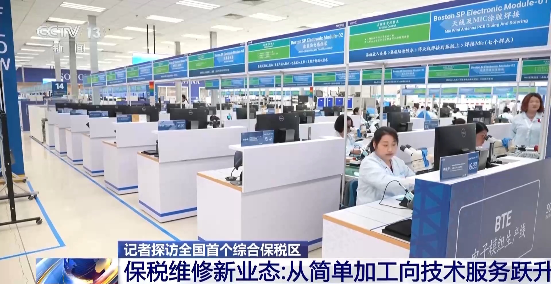 总台央视记者叶奂:传统的加工贸易主要是从国外买原材料或者零部件,在国内进行加工组装成品之后再出口,主要赚的是“加工费”。而如今的“保税维修”外贸新业态,可以说是加工贸易的升级版和高质量版,因为它聚焦电子产品、医疗器械等产业,开展售后检测维修等等业务,赚的不仅仅是“加工费”,同时还有技术服务费。